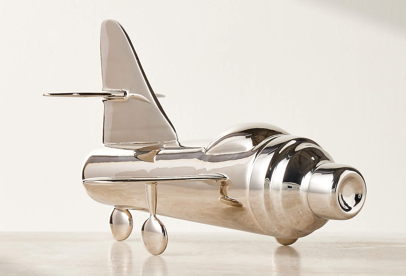Stainless steel cocktail shaker from CB2 – $150. ✈️✈️✈️ It stands up vertically, too.