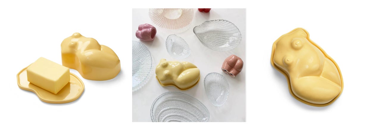 I’ve got a vase that looks like a lady’s bottom, a cookie jar that looks like an apple, a jewelry box that looks like a book, and a planter that looks like a roman bust (similar option). I never really thought of these as a category of items but in my recent online window-shopping it clearly jumped out as a class of its own: objects that look like other objects.