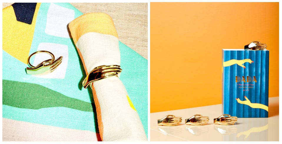 On the subject of body parts, these Dada Daily hand napkin rings are fun! – $75