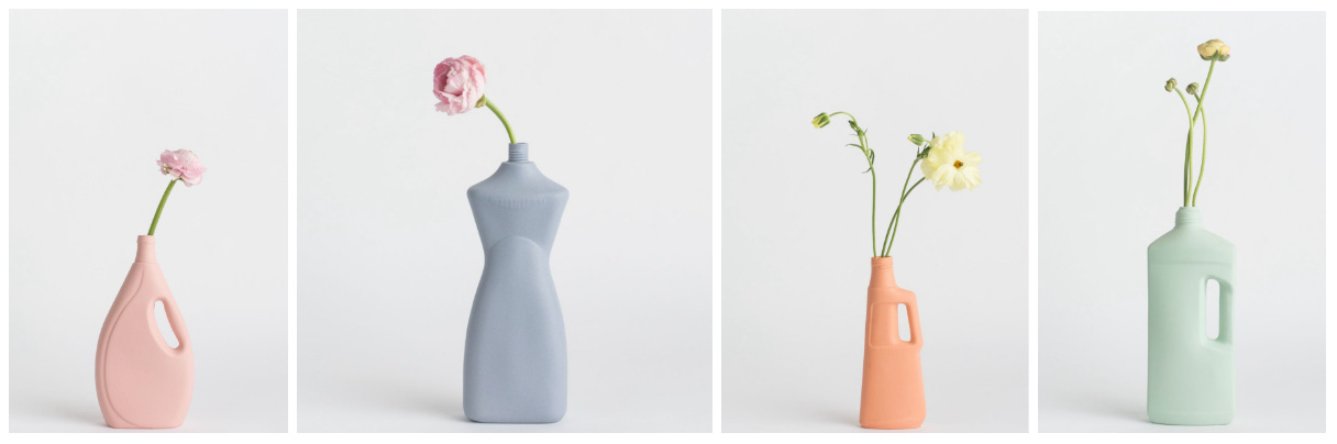 Porcelain Middle Kingdom x Foekje Fleur vases molded after cleaning bottles – $22-$50.