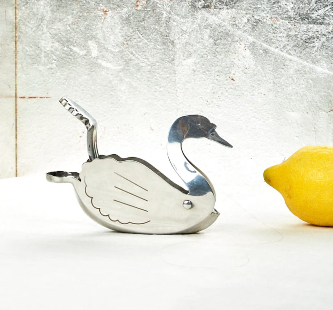 And how chic is this stainless steel swan lemon squeezer? – $38. I want one.