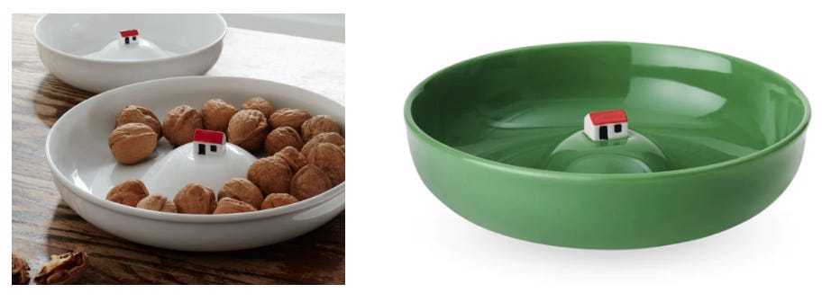 These La Maison Inondée bowls looks like little houses on a grassy or snowy hill (depending on the color) and can be used as a catchall, serving bowl or little snack dish at a party – $20-75.